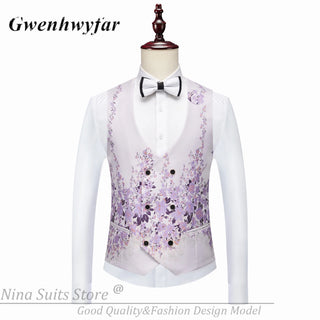 G&N 2023 New Series Men Suits Blazer Beautiful Lilac Purple Floral Pattern Tuxedos 3 Pieces Formal Party Costume Homme Slim Fit