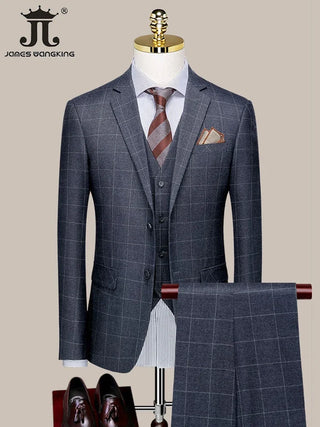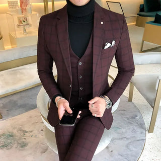 British Korean Style High Quality Modified Plaid Three-Piece Suit for Men - Stylish Business Casual Suit Vest And Trousers Set