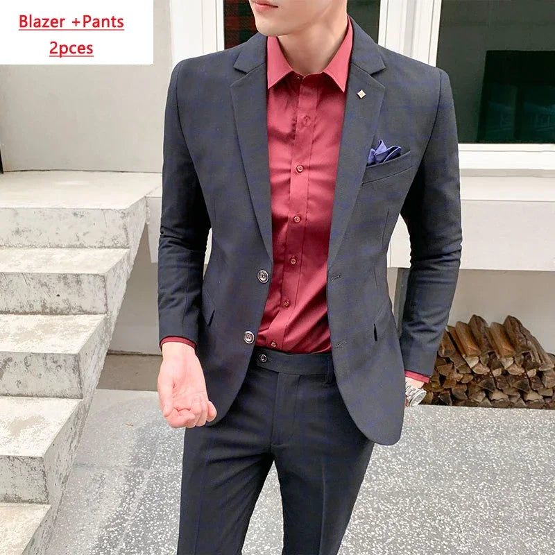 Blazer and Vest and Pants / Boutique Fashion Plaid Men's Casual Business Suit 3pcs Set Groom Wedding Dress Performance Costume