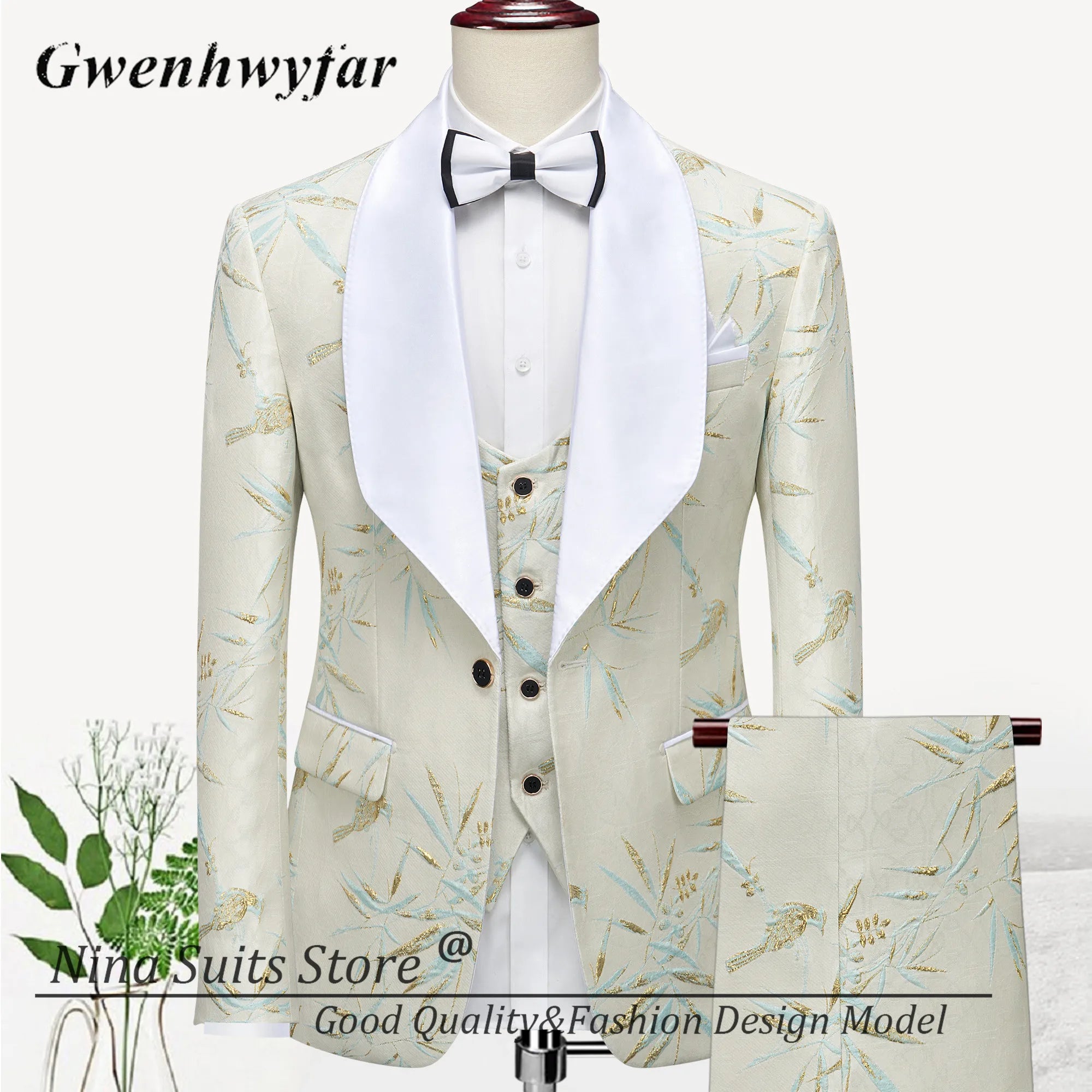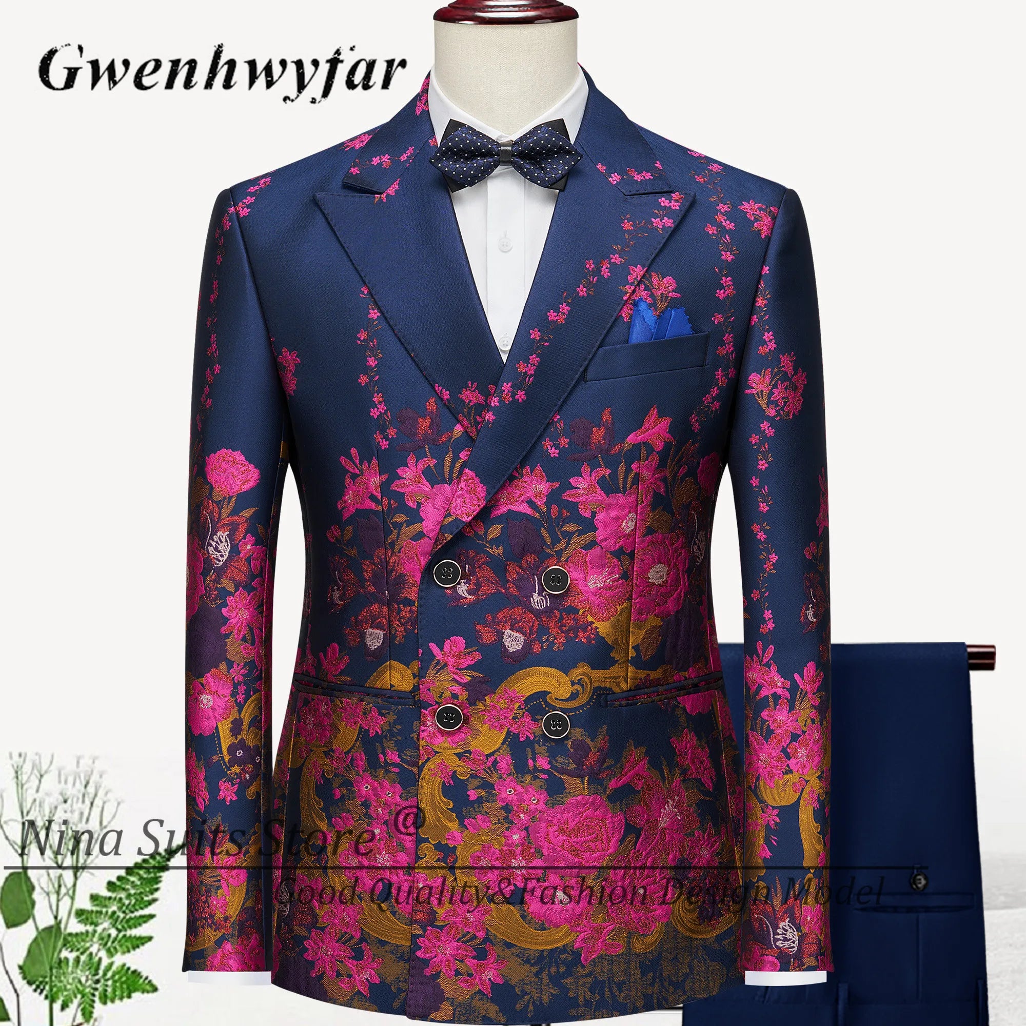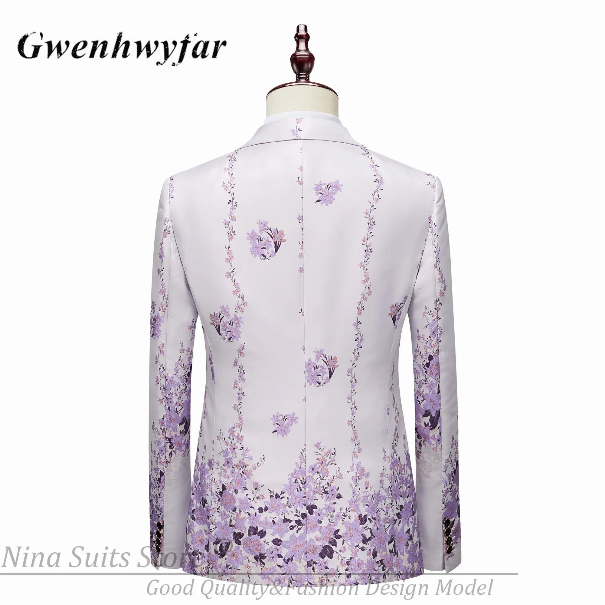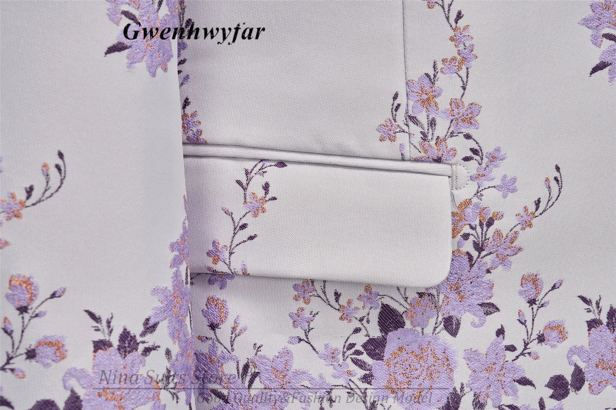 G&N 2023 New Series Men Suits Blazer Beautiful Lilac Purple Floral Pattern Tuxedos 3 Pieces Formal Party Costume Homme Slim Fit