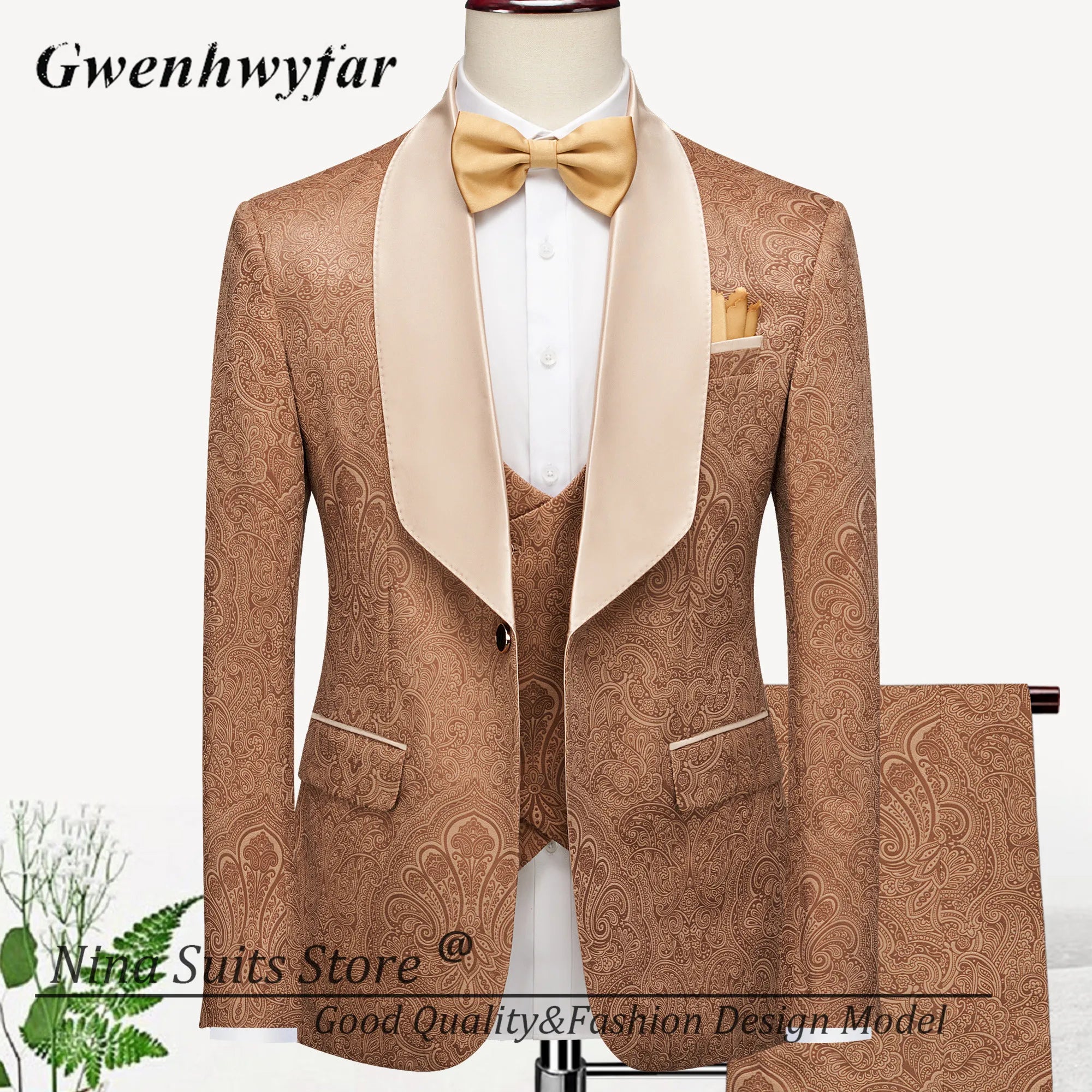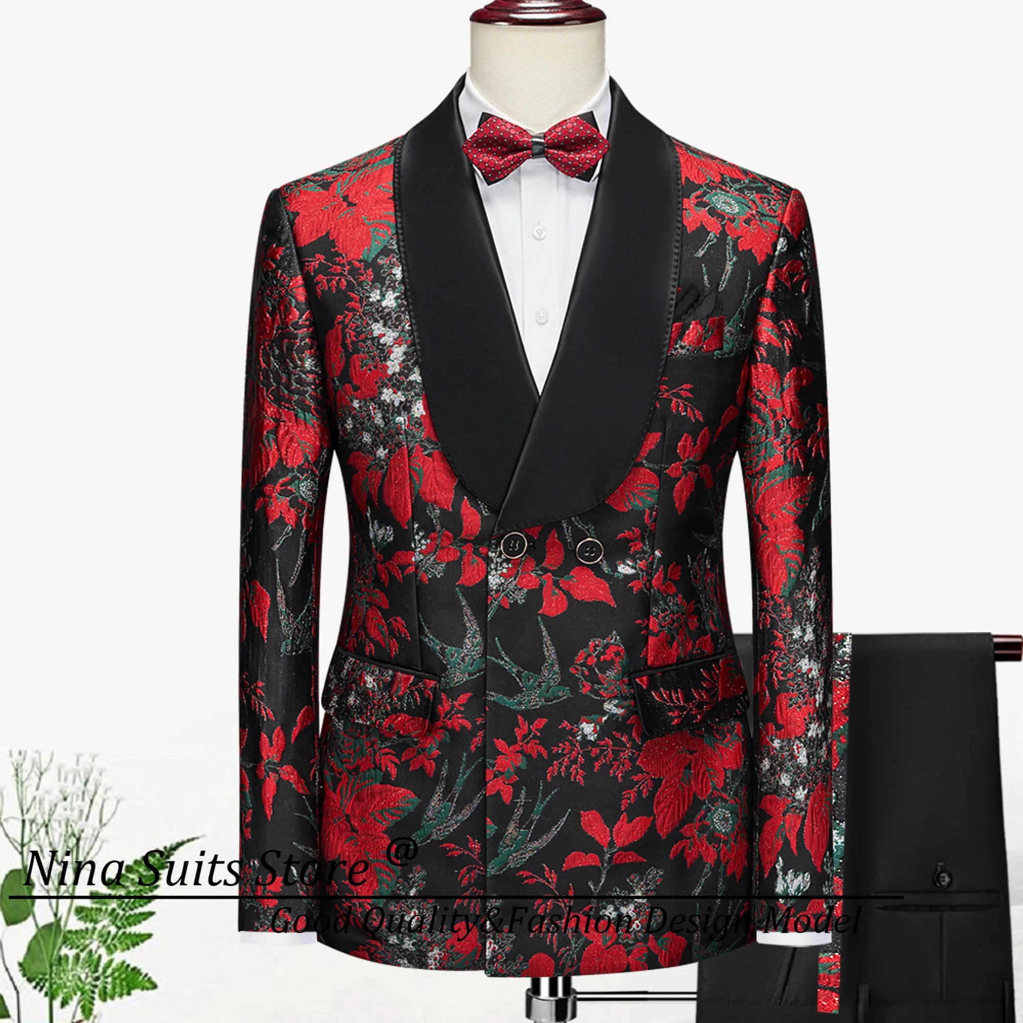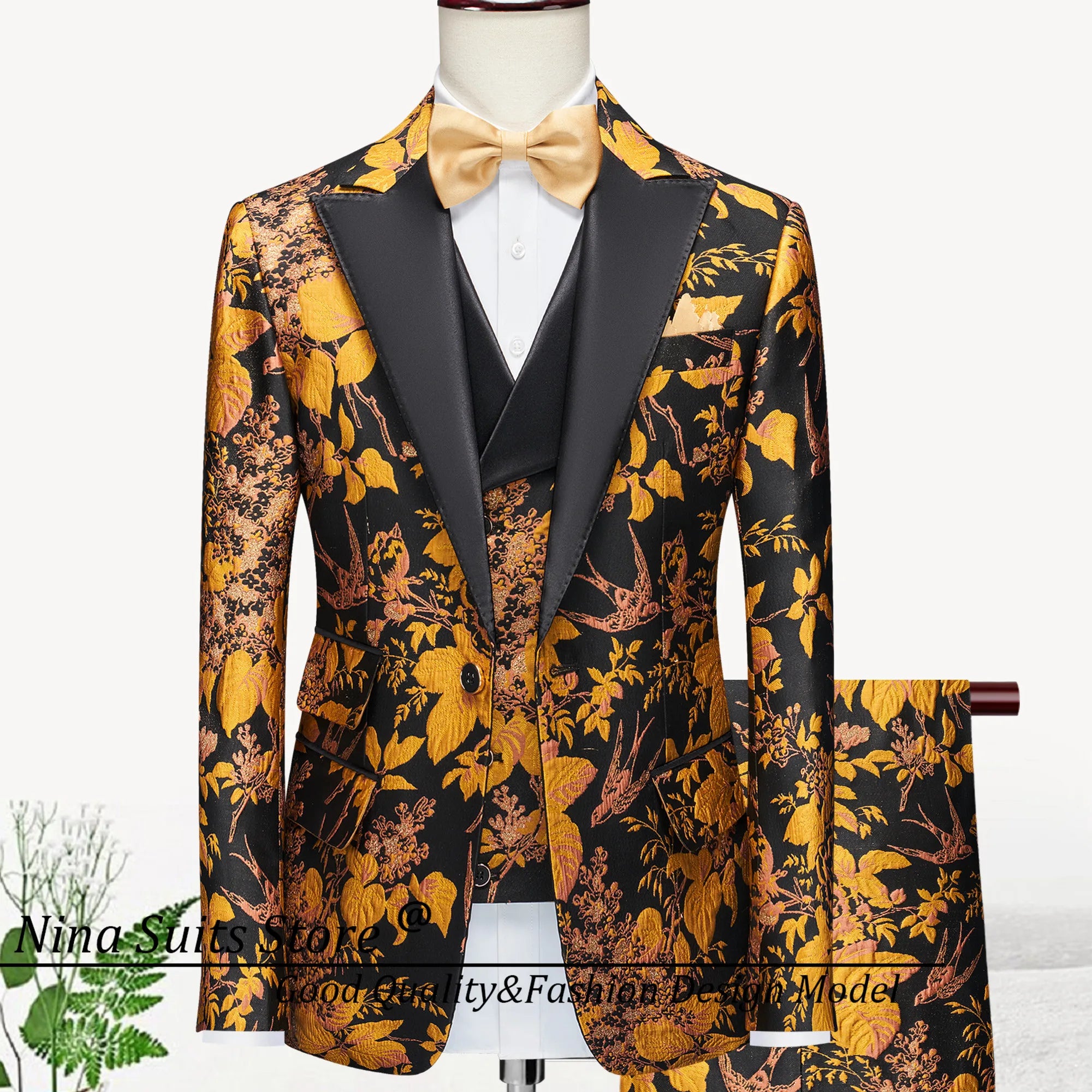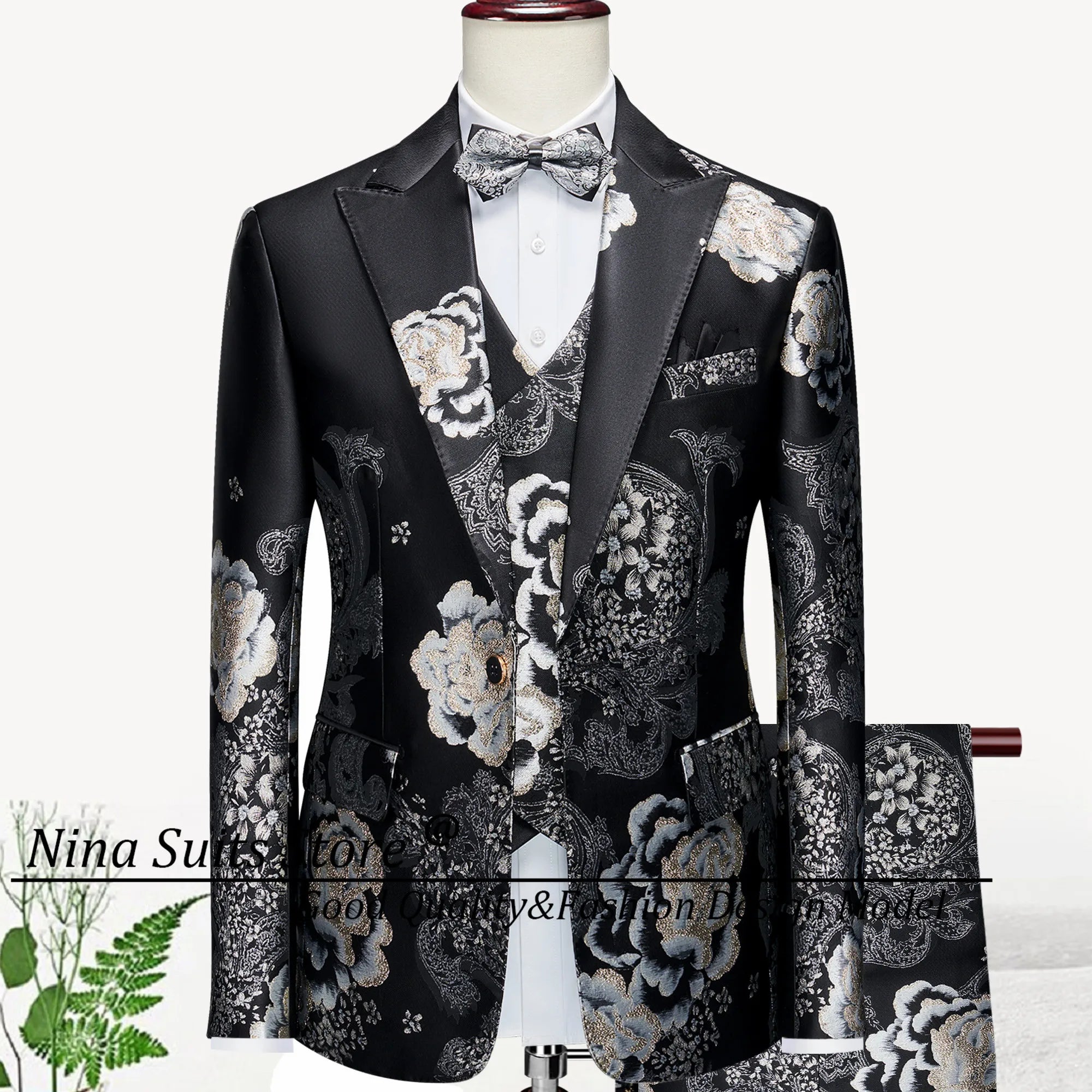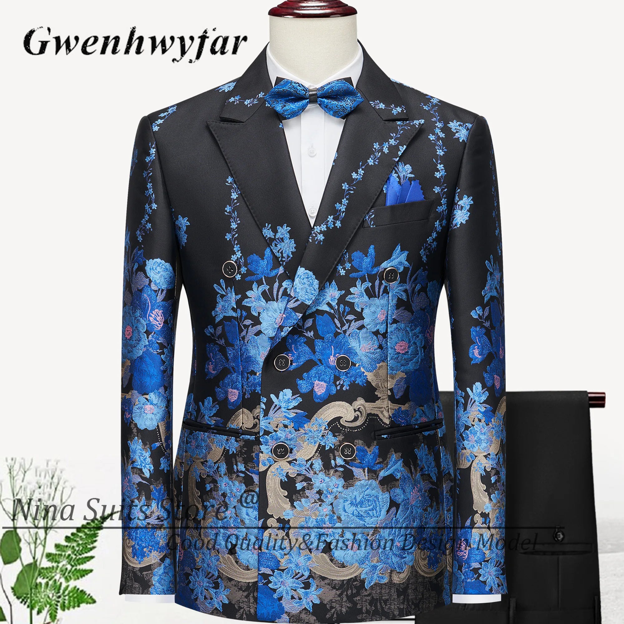 G&N 2023 New Series Men Suits Blazer Beautiful Lilac Purple Floral Pattern Tuxedos 3 Pieces Formal Party Costume Homme Slim Fit