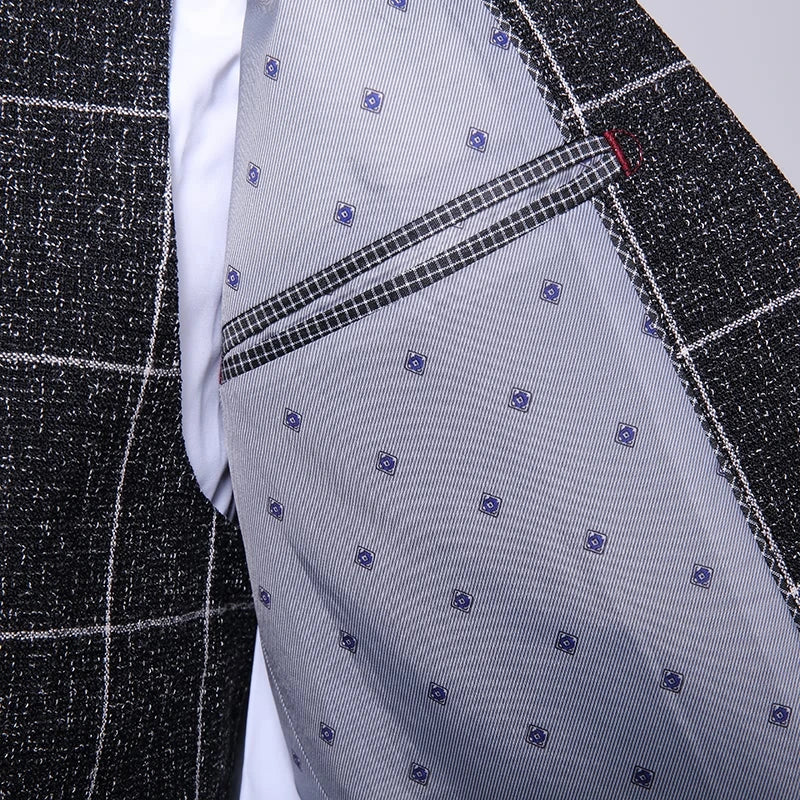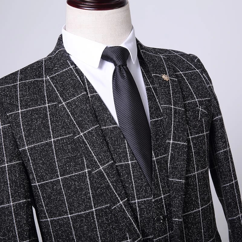 Men's Boutique Three-Piece Suit Set Checkered Stripes Vest Trousers Handsome Trend Leisure Business Casual Wear 2025 New