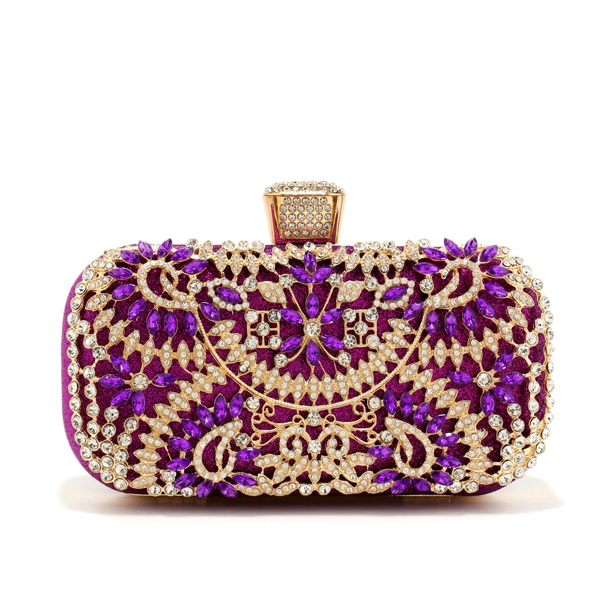 Metal Handle Diamond Evening Clutch Purse