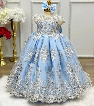 Customized Yellow Flower Girl Dress For Wedding Gold Appliques Backless Floor Length Classic Toddler Birthday Party Ball Gown