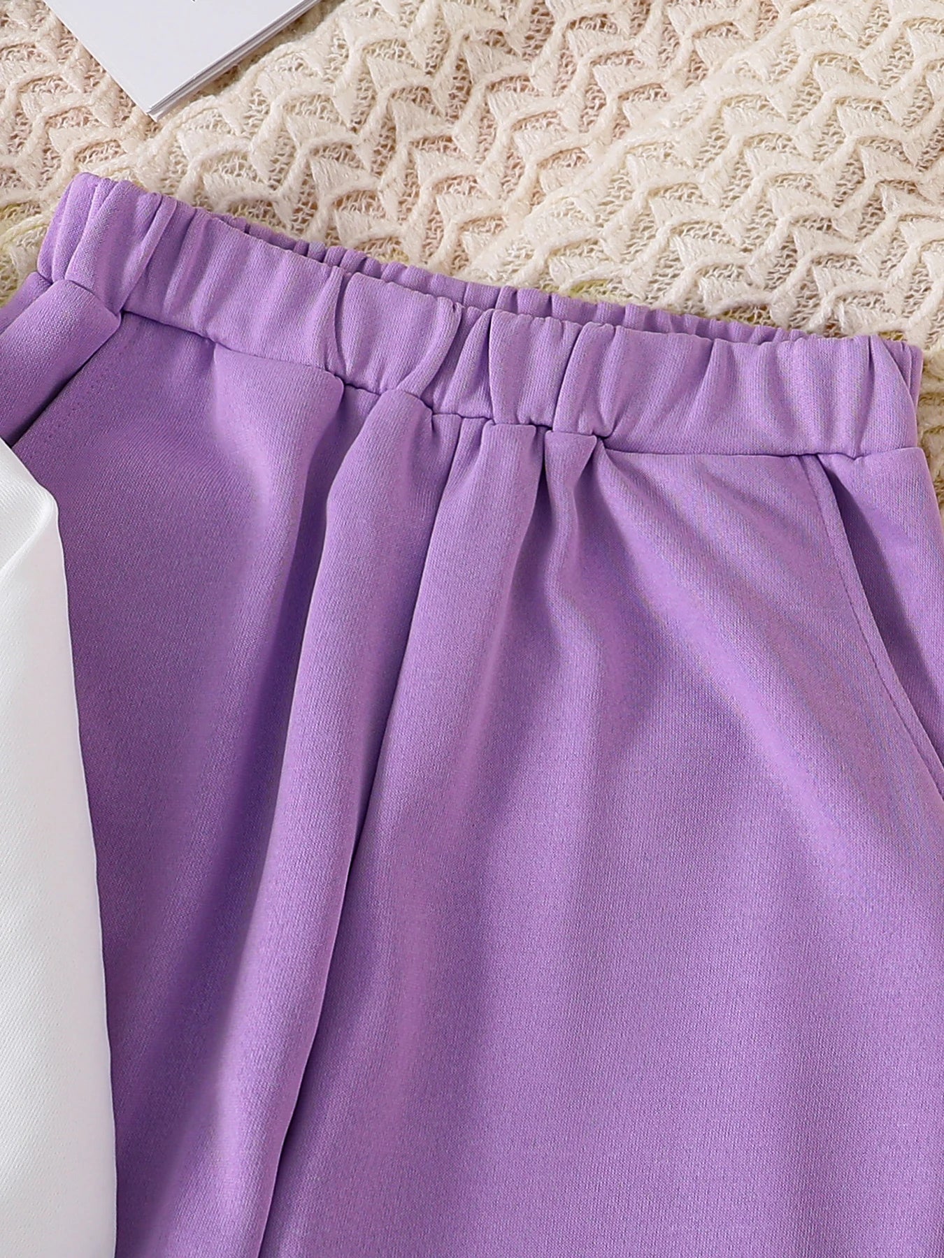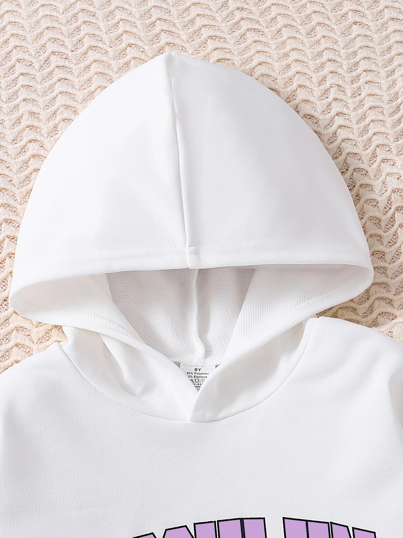 Girls' Autumn Children's 8-12 Y Fashion Sports White Letter Printed Hoodie+Purple Printed Pants 2-piece Set
