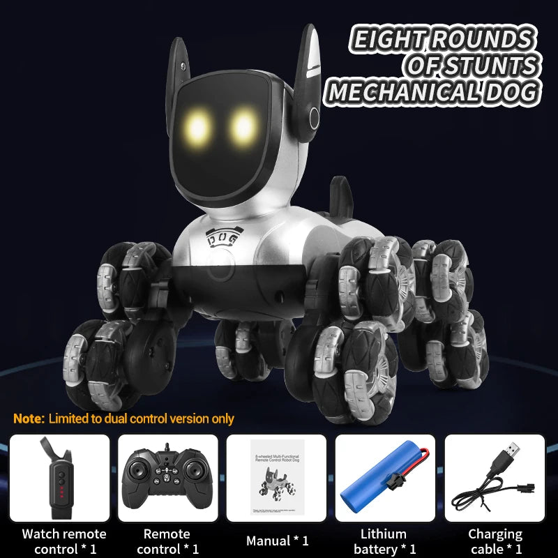 Q200 Intelligent Mechanical RC Dog Gesture Induction Remote Control Toy Eight Wheels Four Wheels Stunt Animal Toys for Children.
