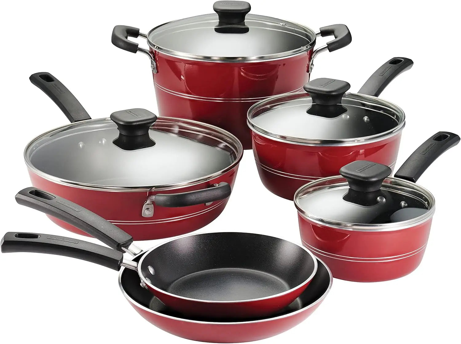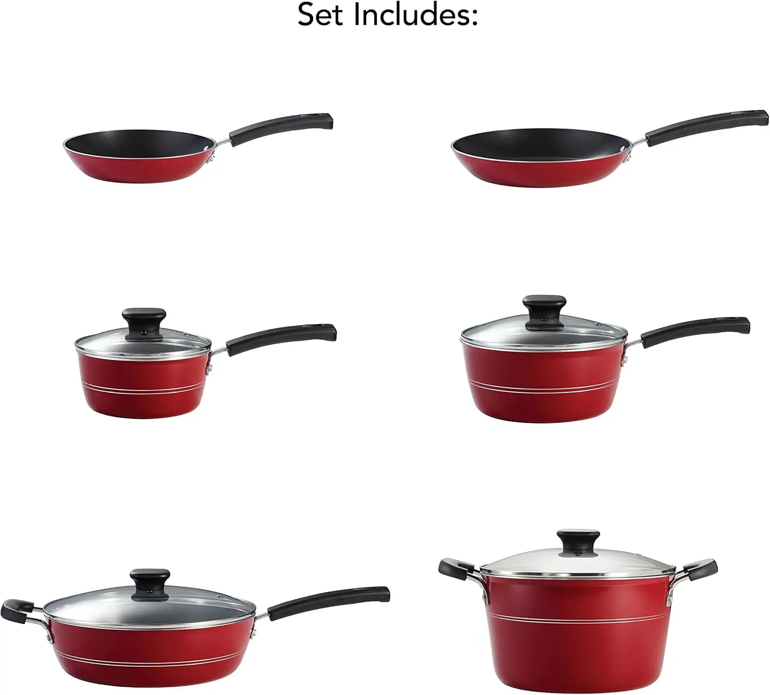 Sicilia 10-Piece Non Stick Cookware Set with Glass Lids, Aluminum Nonstick Pots and Pans Kitchen Set (Raspberry)