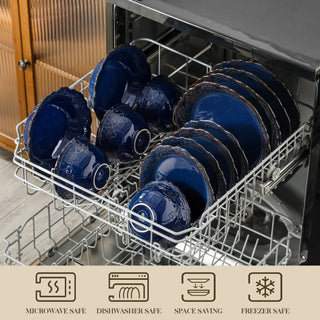MALACASA 16 Piece Relief Blue Reactive Glaze Plates Dinner Sets Ceramic Dinnerware Set with 4 PCS Dinner Plate/Dessert/Bowl/Soup
