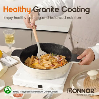 DONNOR 15pcs/set Non Stick Pan Cookware Ceramic Frying Pan Soup Pot with Lid Anti Scald Double Ear Stove Universal Kitchen Tools
