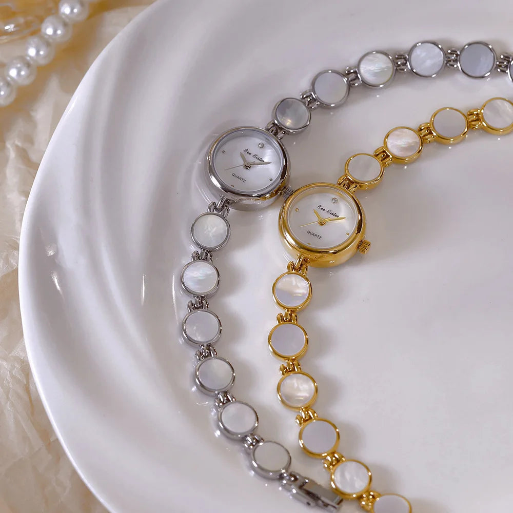 💎 Free Shipping Available | Add timeless elegance with this gold shell bracelet watch.