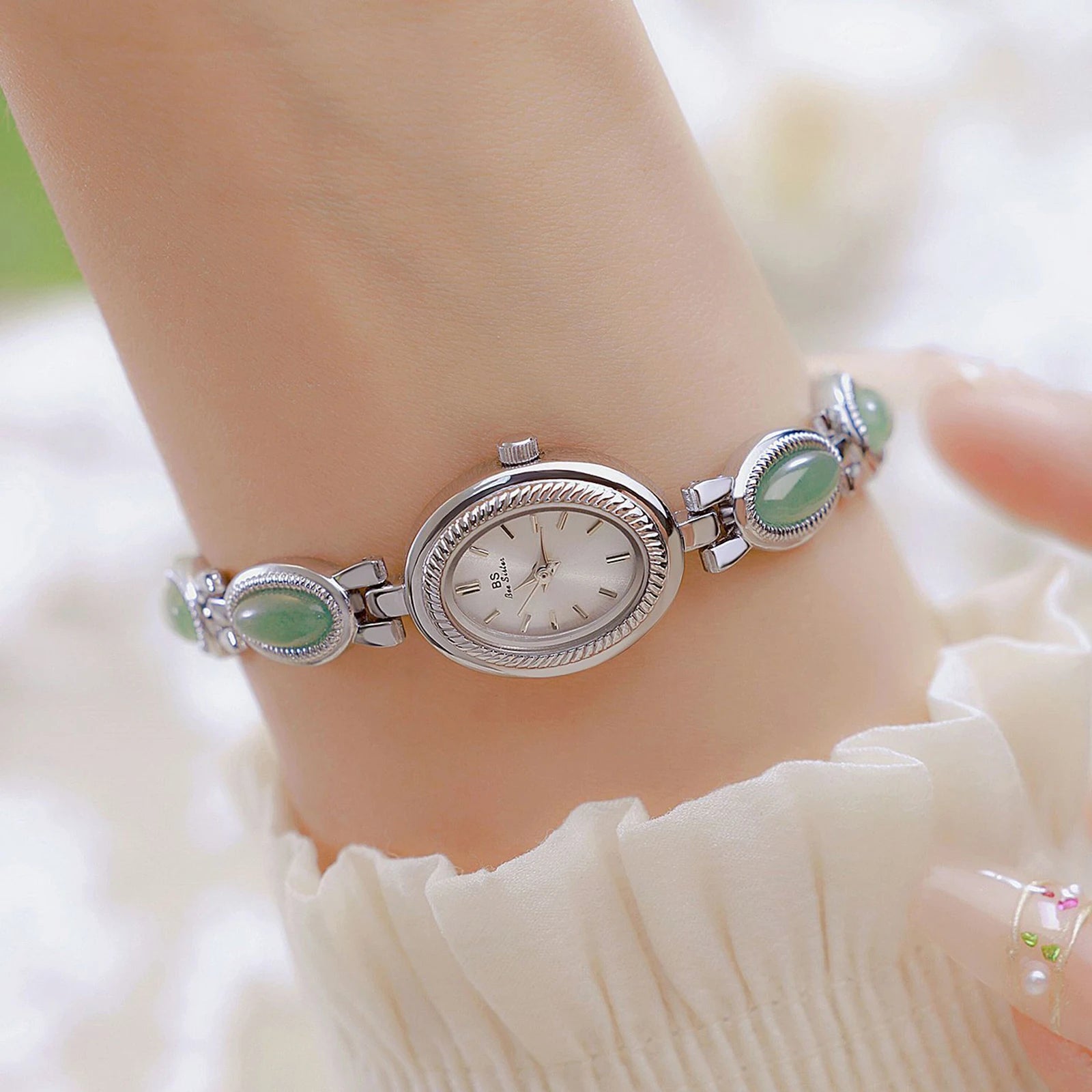 💎 Free Shipping Available | A women’s jade quartz bracelet watch for timeless elegance.