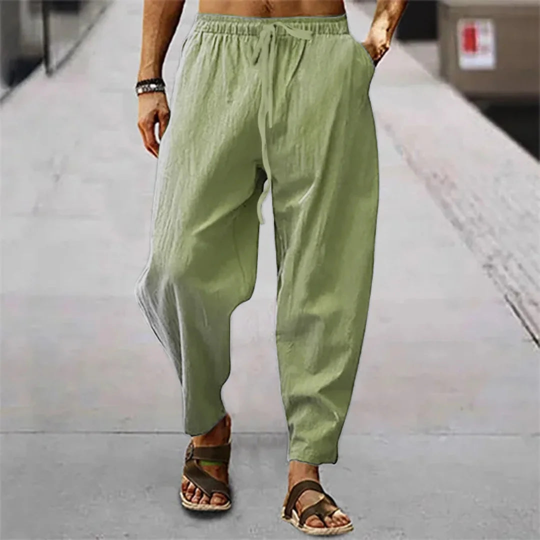 New Men Cotton Linen Pants Summer and Autumn Solid High Waist Wide-Leg Trousers Male Loose Hemp Casual Breathable Sports Pants