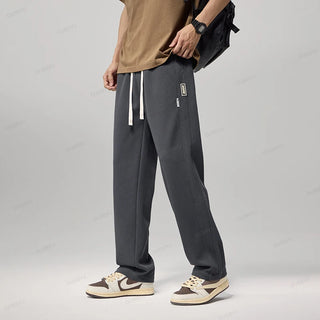 New Upgraded Autumn Winter Soft Cosy Lyocell Fabric Men's Pants Baggy Straight Elastic Waist Thick Wide Trousers Male Oversized