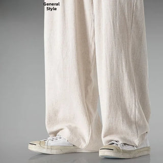 Summer Large Size Linen Cotton Wide Leg Pants Men Casual Comfortable Loose Fit Straight Leg Trousers Long Pants