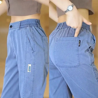 Summer Soft Lyocell Fabric Men's Jeans Thin Loose Straight Pants Drawstring Elastic Waist Korea Casual Trousers Plus Size M-5XL