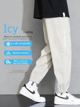 Men's thin straight pants Drawstring casual pants nineminute drawstring pants ice silk sweatpants