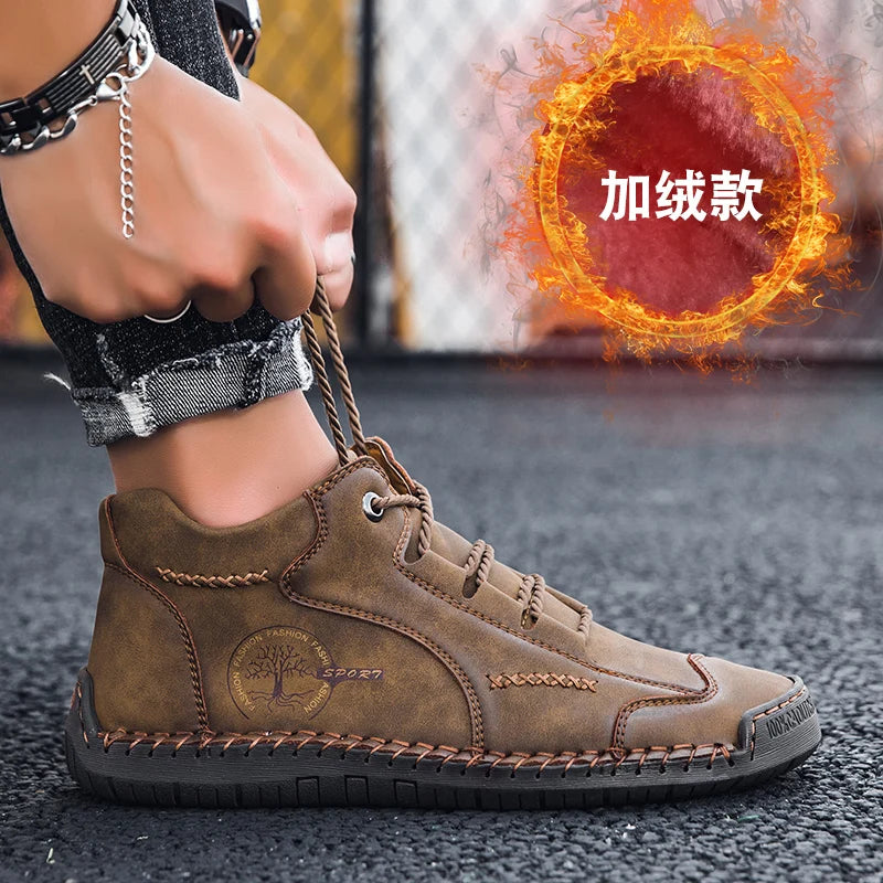 Fashion Men Ankle Boots Handmade Mens Boots Lightweight Mens Designer Boots Outdoor Sneakers Leather Work Boots Plus Size 38-48