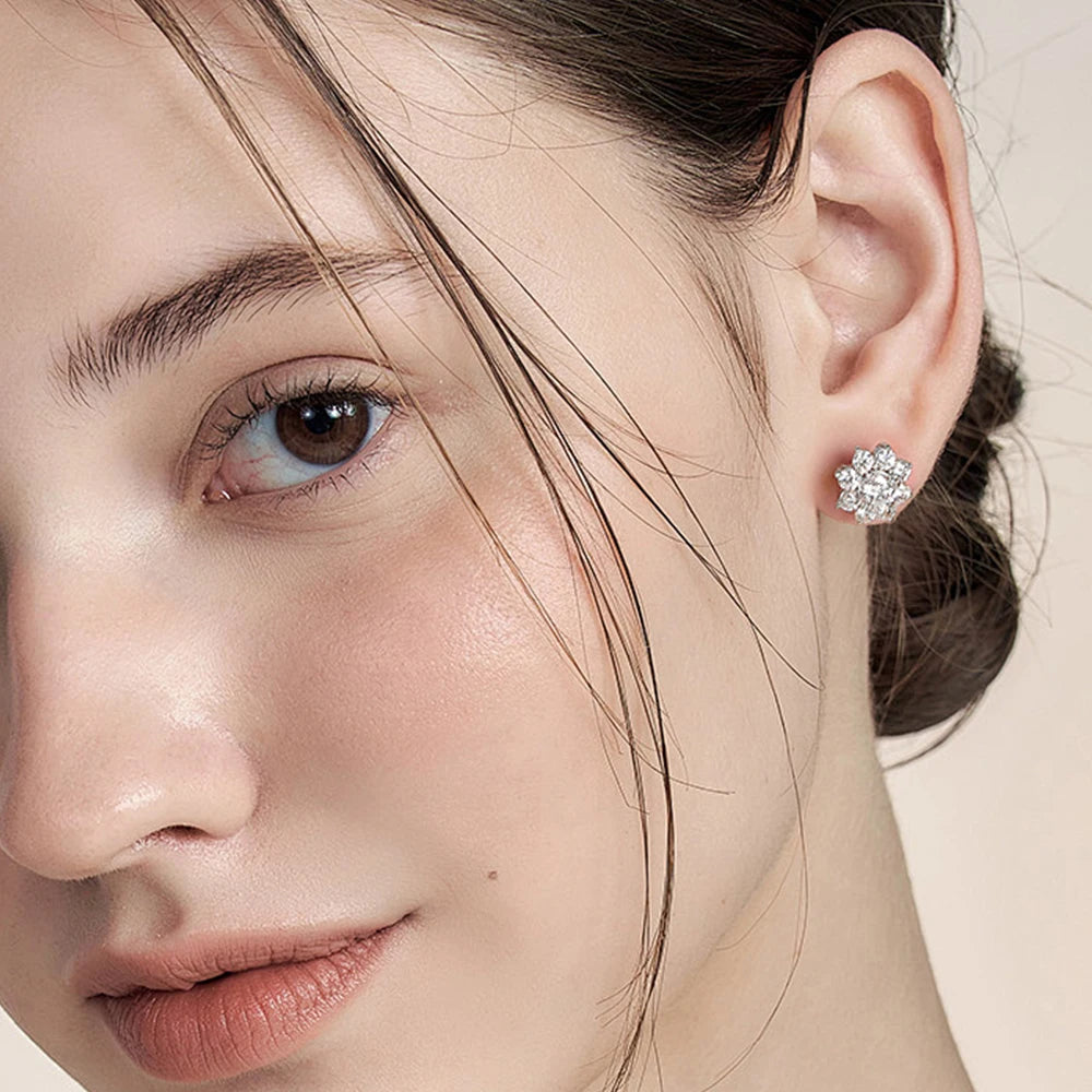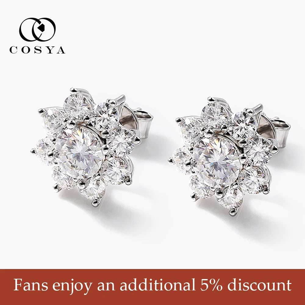 COSYA D VVS1 Moissnaite Earrings For Women 925 Sterling Sliver Plated 18k White Gold Snowflake Stud Ear Wedding Fine Jewelry