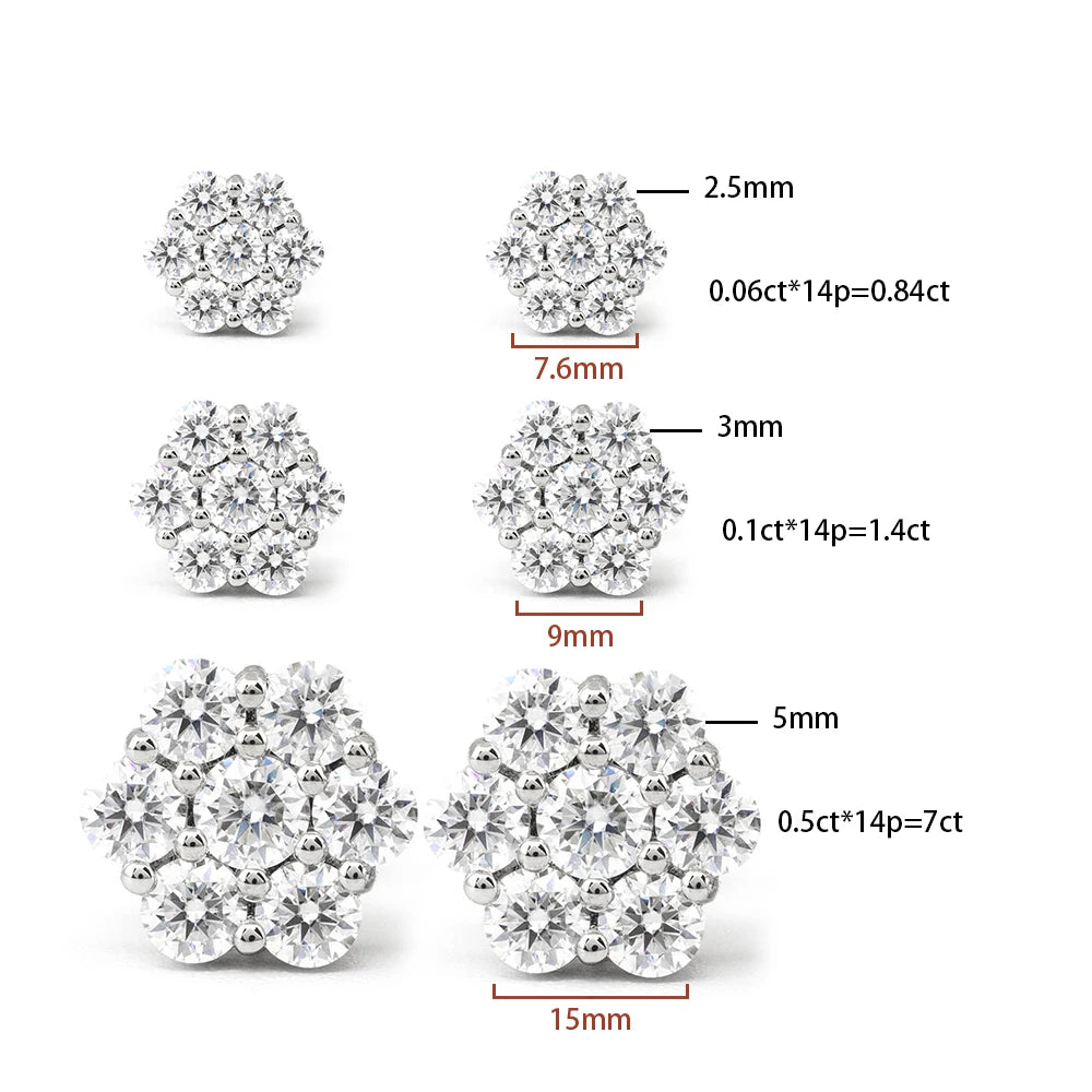 Moissanite Stone Size: 2.5mm/0.06ct 3mm/0.1ct 5mm/0.5ct