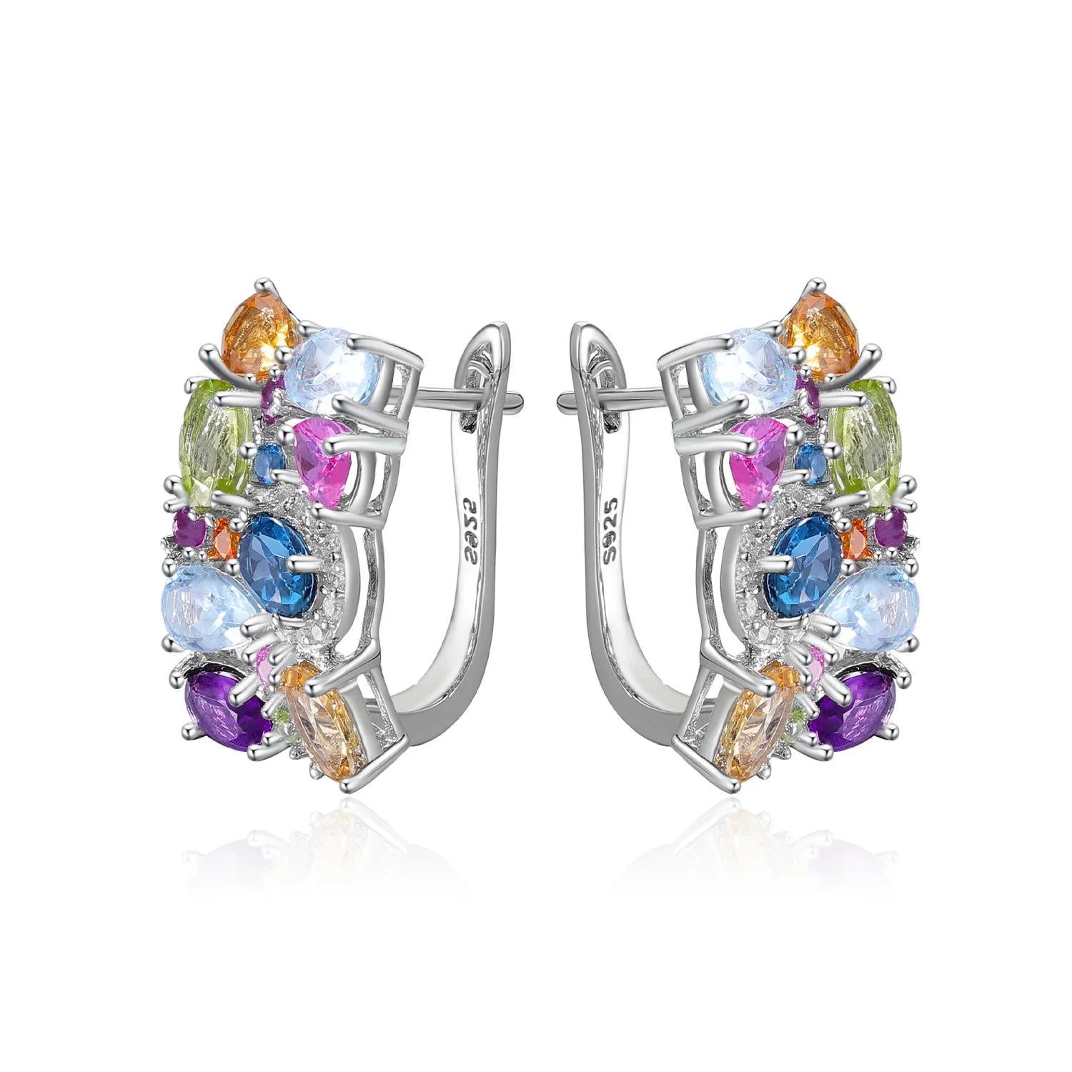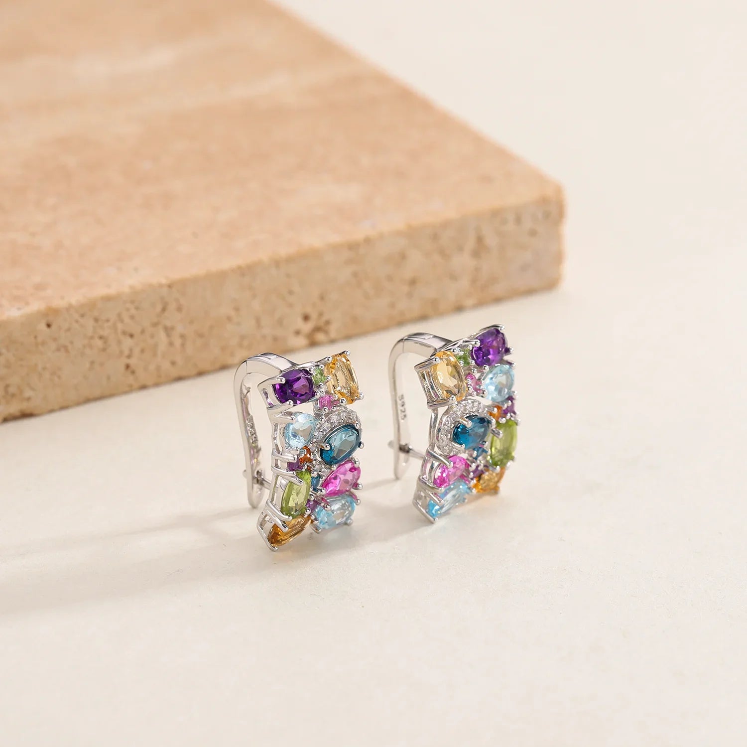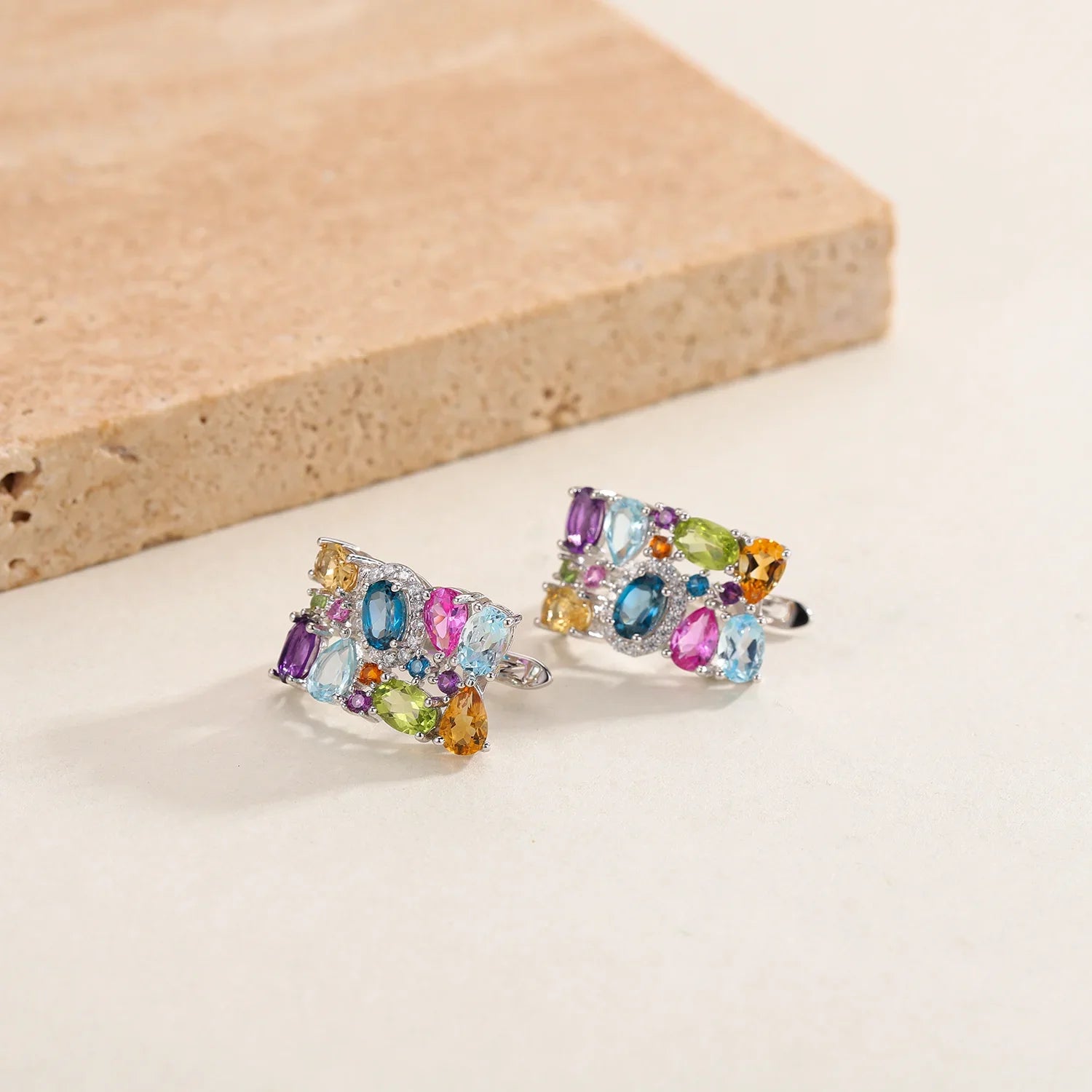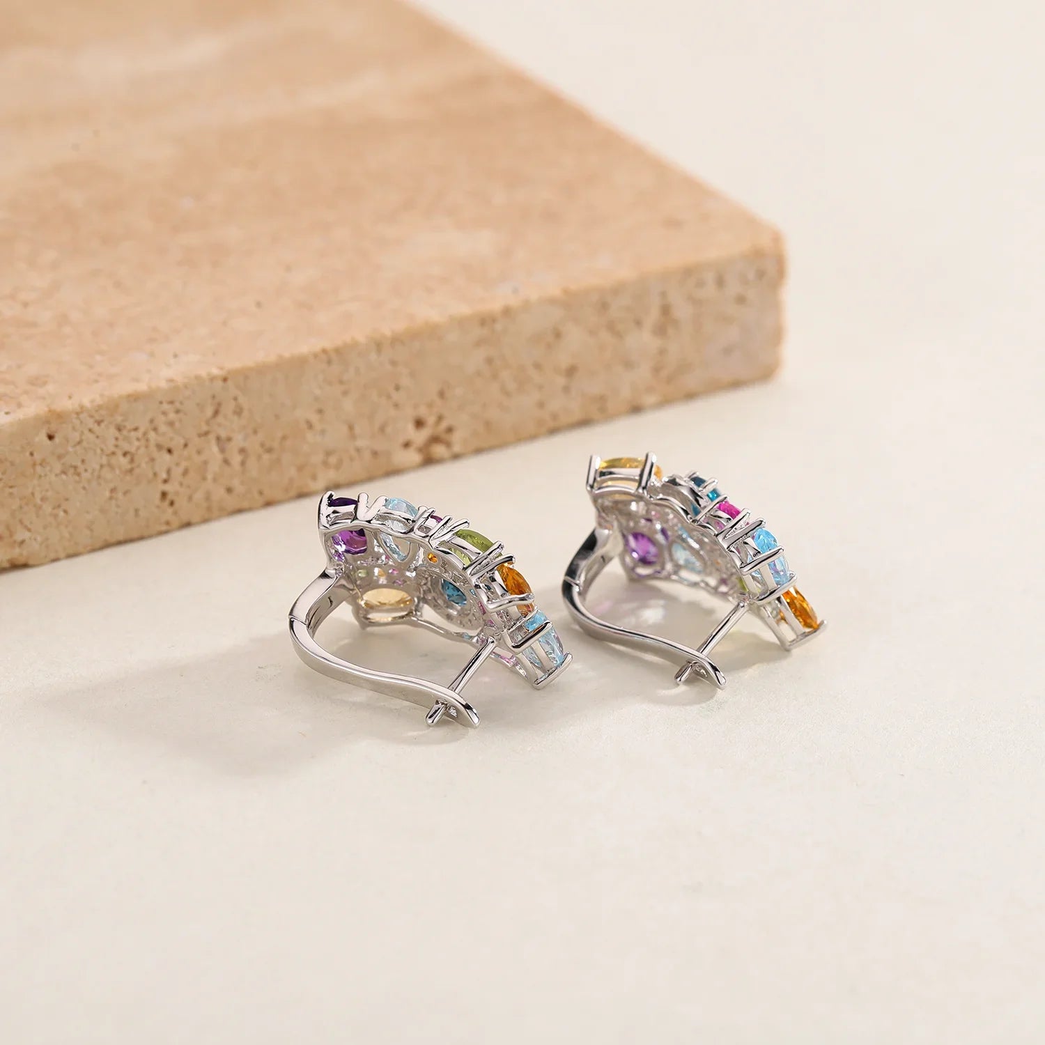 GEM'S BALLET 925 Sterling Silver Handmade Jewelry Multicolor Birthstone Earrings Natual Citrine Amethyst Topaz Clip Earrings