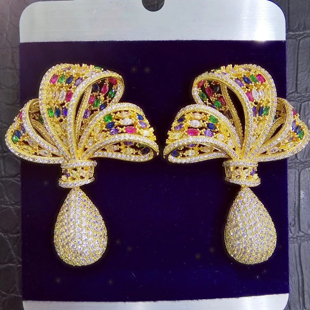 GODKI 72mm Luxury Daisy Flower Nigerian Tassels Long Dangle Earring For Women Wedding Zircon Crystal Dubai Bridal Earring