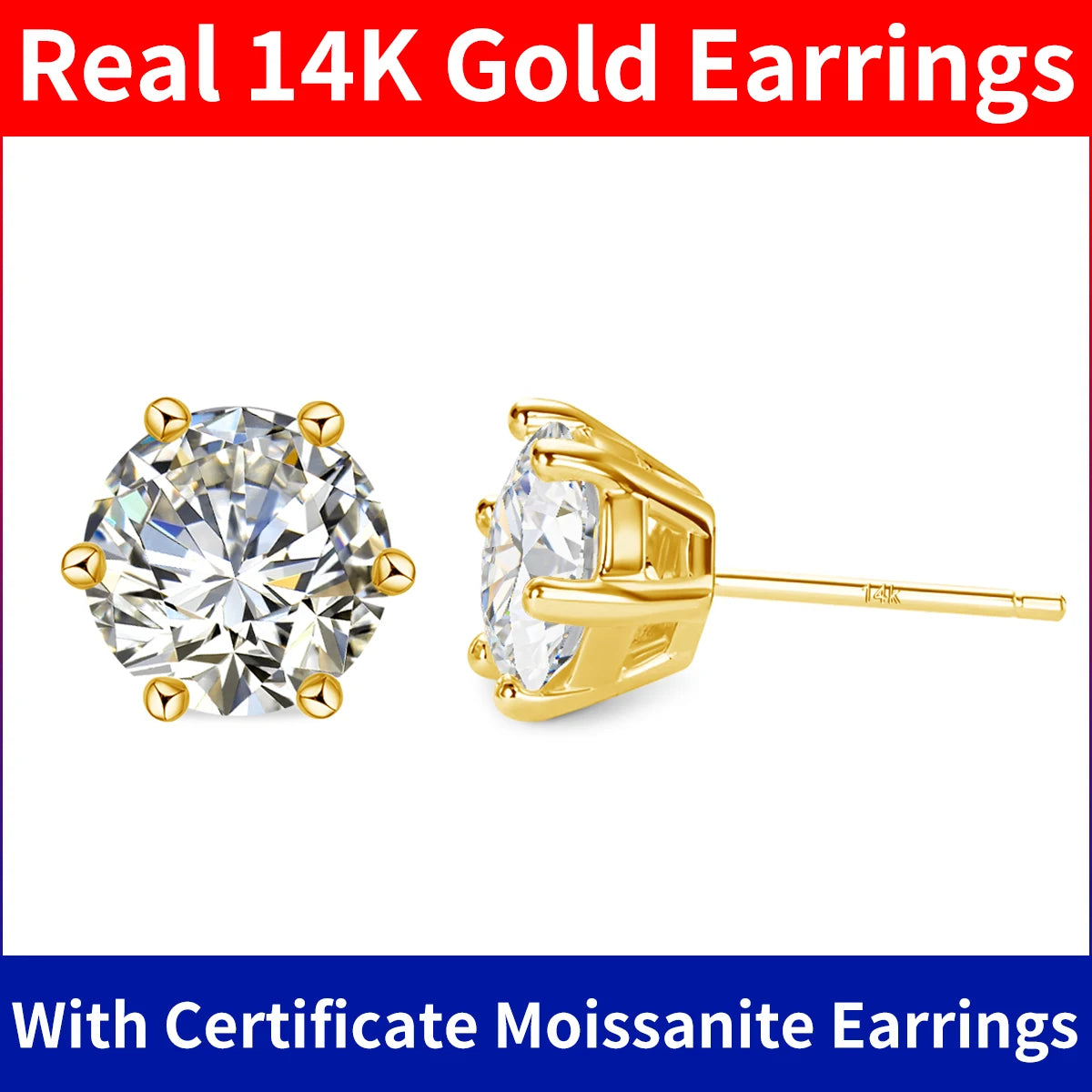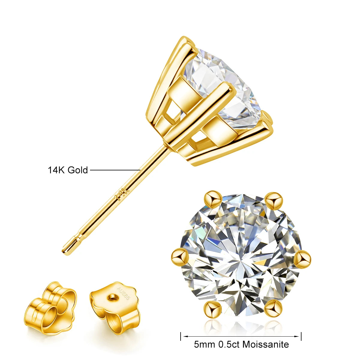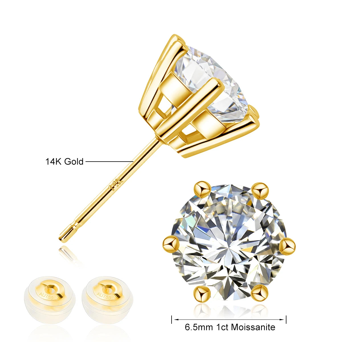 14k gold moissanite earrings: Moissanite Earrings Stud