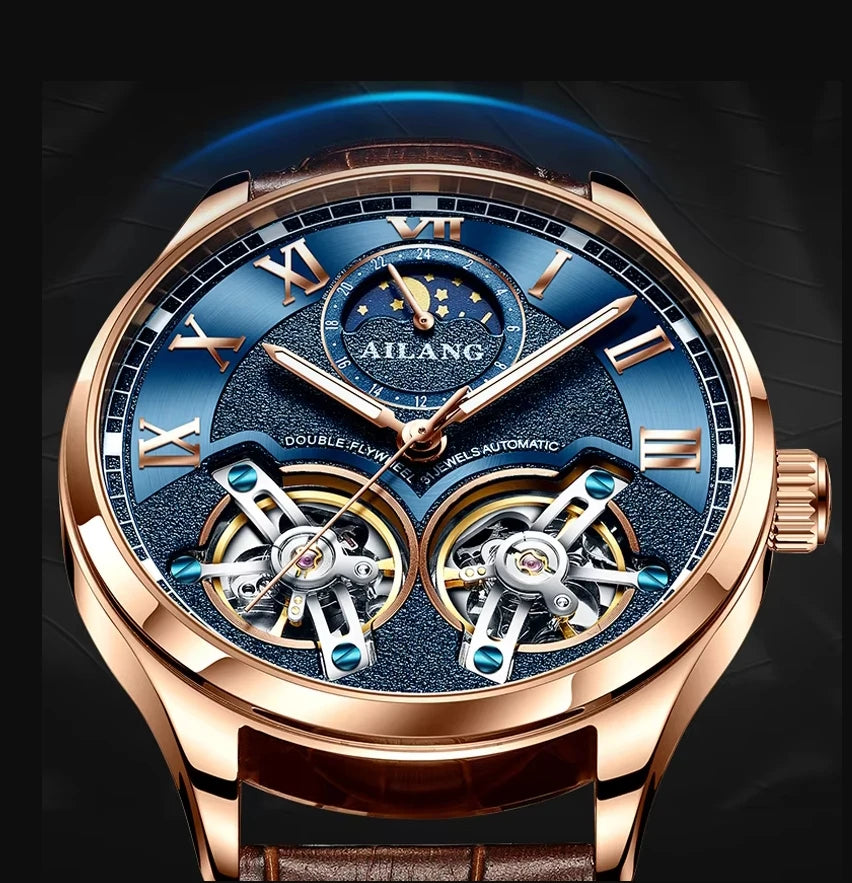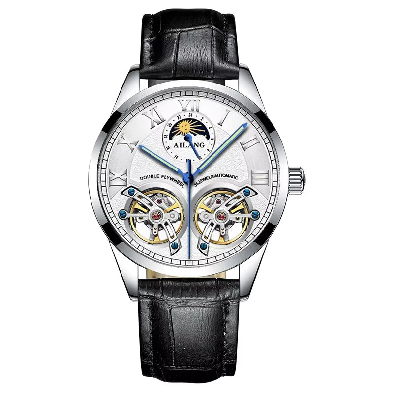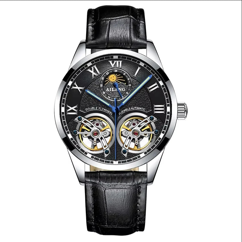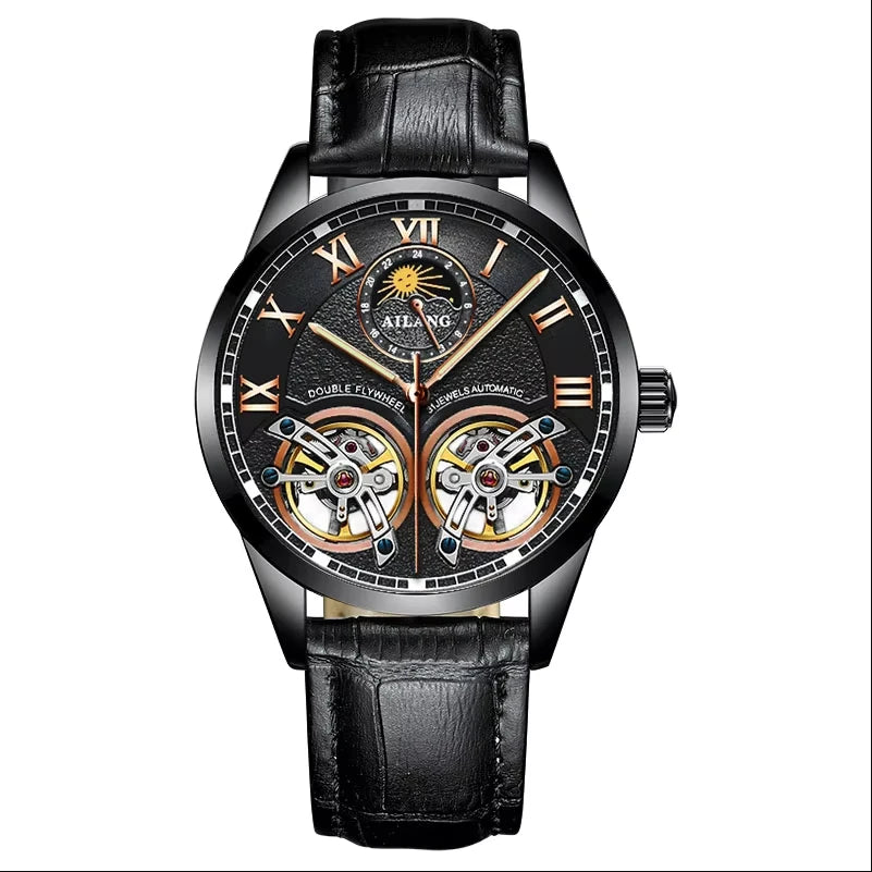 AILANG Original Design men's Double Flywheel Automatic Mechanical Watch Fashion Leisure Business Luxury Clock