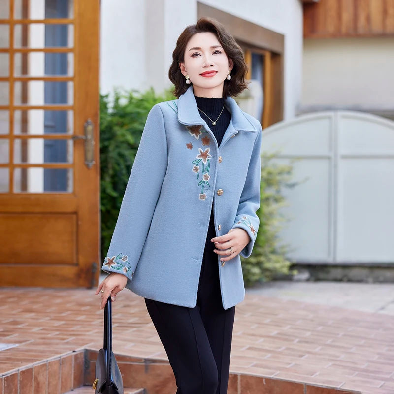 Luxury Floral Short Woolen Coat
