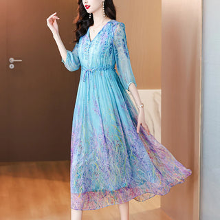 Vintage Jacquard Patchwork Velvet Dress Women Autumn Winter New Elegant Notch Collar Long Sleeved A-Line Party Midi Dresses J974