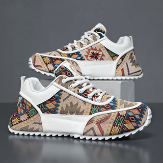 Men's casual sneakers canvas print flat high top couple shoes non-slip thick sole breathable loafer walking student shoes