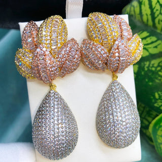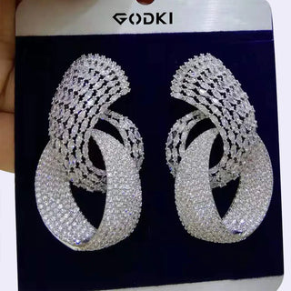 GODKI Trendy Flower Drop Earrings For Women Wedding Cubic Zirconia Dubai Bridal Earrings Costume Jewelry Summer Party