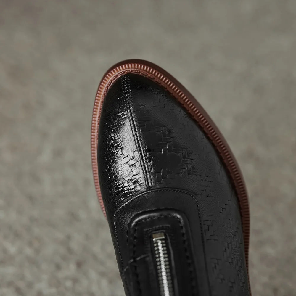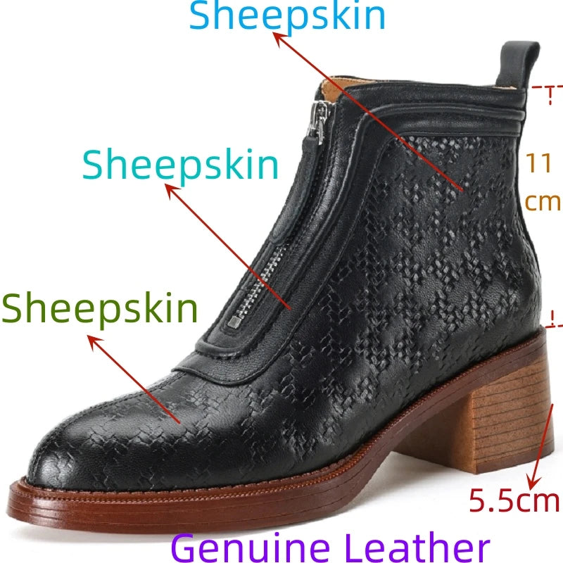 Genuine Leather Chunky Heel Boots
