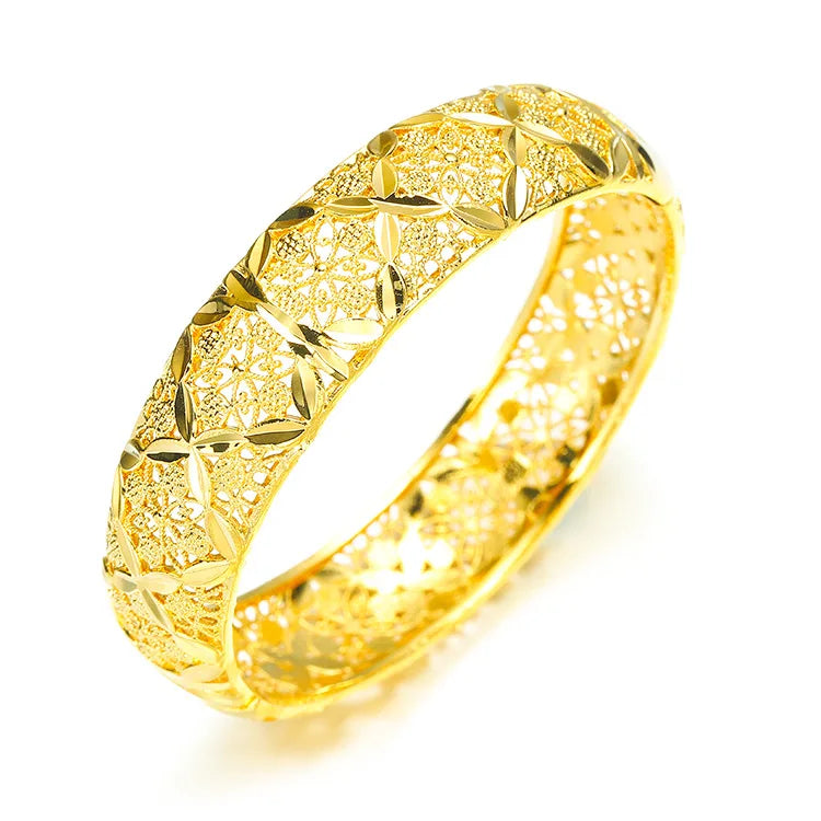 Luxury 24K 9999 Pure Gold real gold Women's Buckle Hollow Grass Bracelet