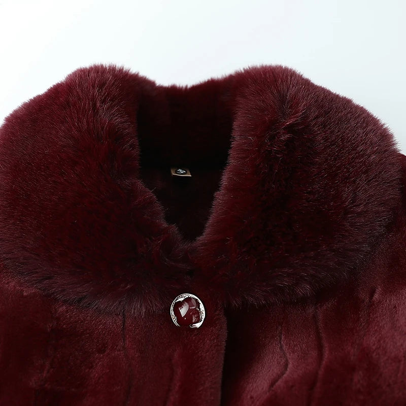 plus Size Middle Aged Elderly Women Mink Coat Winter Thicken Cotton Padded Faux Fur Jacket High End Grandma Velvet Fur Overcoat