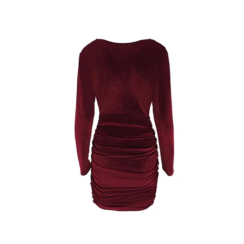 Plus Size New Fashionable Long Sleeve Elegant Women's Solid Color Sequin Dress