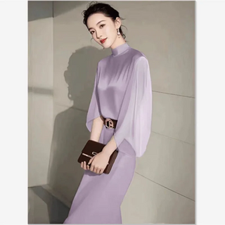 French Elegant Women's Party Outfits Autumn New Fashion Stand Collar Blouse + Temperament Bag Hip Midi Skirt Suit 2Pcs Set 433P