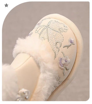 Faux Fur Winter Boots For Girls Vintage Children's Plush Boots Low Heel Elegant Lady Kid's Snow Boots Cotton Shoes For Girls