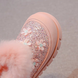 Faux Fur Winter Boots For Girls Trend Fashion Glitter Kid's Snow Boots Thick Warm Plush Warm Children's Cotton Shoes Velvet Shoe