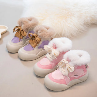 Girls Fleece-Lined Snow Shoes Children Thicken Warm Footwear New Kids Casual Winter Boots Toddler Padded Outdoor Walking Shoes