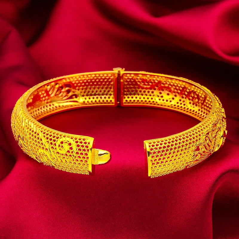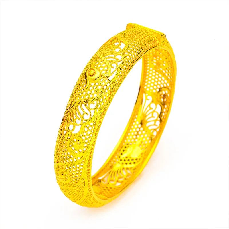Peacock Clip Bracelet for Women 24K Gold, AU999 Daily Wearing Retro Shows Calm and Temperament, Adapted to Chinese Retro Style
